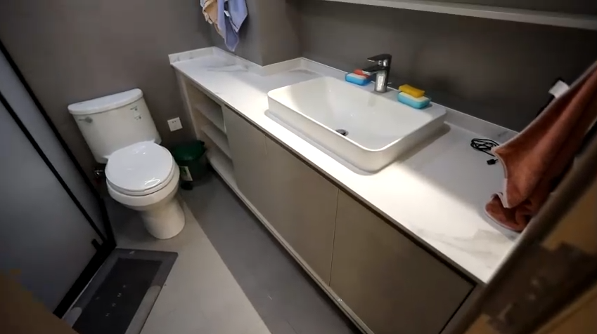为了实现一家六口人都能够方便的使用卫生间,设计师将原本改为餐厅的区域又恢复为了卫生间,合理规划了洗手池,坐便器和淋浴房,这样两卫完全能够满足一家三代人的使用需求。