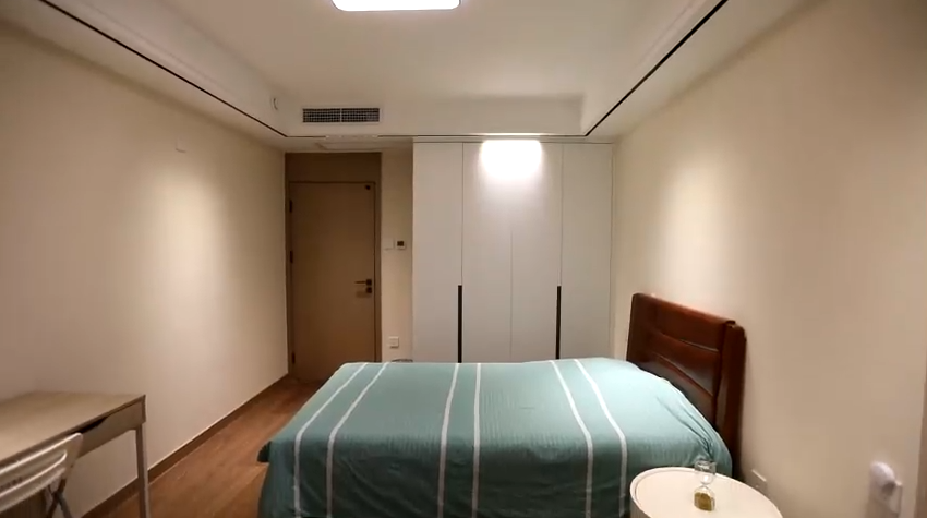 因为是一家三代人同住,结合业主实际情况,设计师将客厅改造为了老两口的卧室,利用润元定制家具打造了通顶衣柜以及电视柜,主卧阳台也打造了定制柜来满足对储物空间的需求。